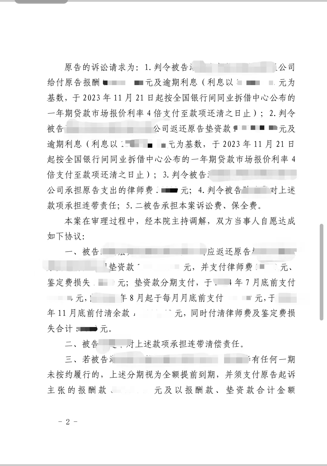 此次案件的顺利解决,不仅为类似“背靠背”条款纠纷提供了可借鉴的实务经验,也体现了司法调解在化解商事争议中的高效性与灵活性。未来,季菁赟律师将继续秉持专业、尽责的态度,为客户提供更加优质的法律服务。