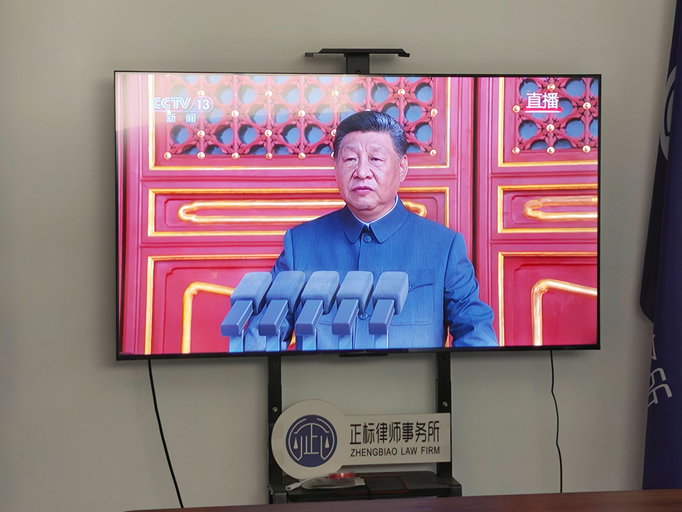 正标所组织在所律师进行了阅兵仪式的直播观看。