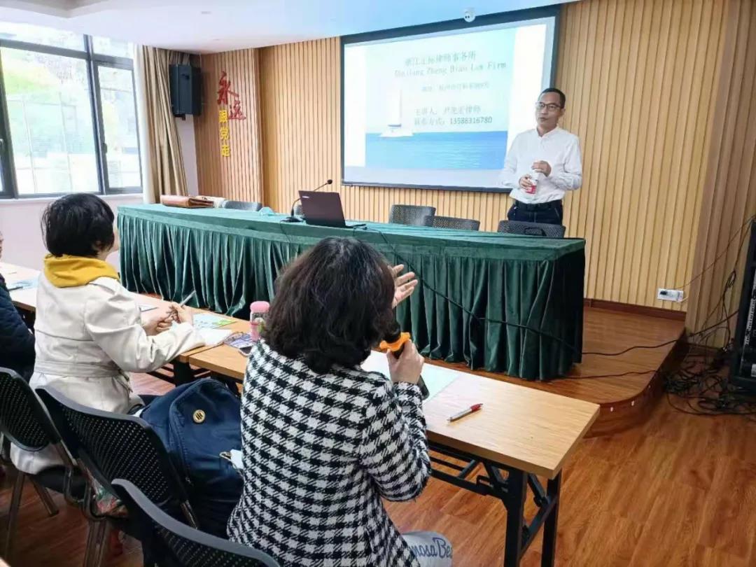 自民法典颁布以来,浙江正标律师事务所积极投入到民法典的公益宣讲活动之中。2021年4月8日,浙江正标律师事务所合伙人尹先宏律师深入拱墅区申悦社区,为该社区群众提供了民法典有关“财富传承”公益普法讲座。会场,尹律师通过“法律条文+案例”的方式给大家娓娓道来,大家听课聚精会神,遇到困惑的问题积极与尹律师互动,现场反响热烈、群众对讲解好评如潮,本次讲座取得圆满成功。